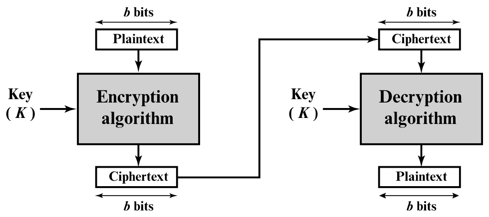 - Block size: 即每次输入多少位原文, 一般是 \(2\) 的幂次方 (比如 \(128\) bit).