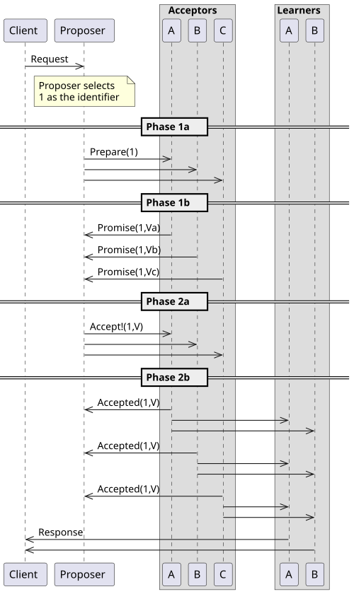 - 用 PAXOS 协议的系统中必须有三种节点: Proposer, Acceptor, Learner.