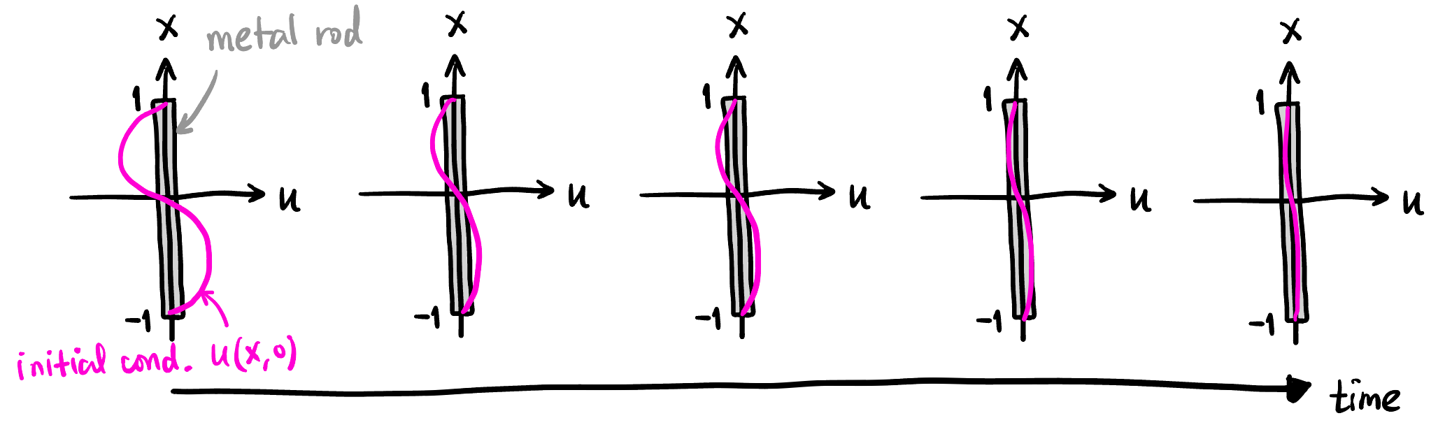 这里简单复习一下 1D 的热传导方程: \[ \boxed{u_t = \alpha u_{xx}} \]