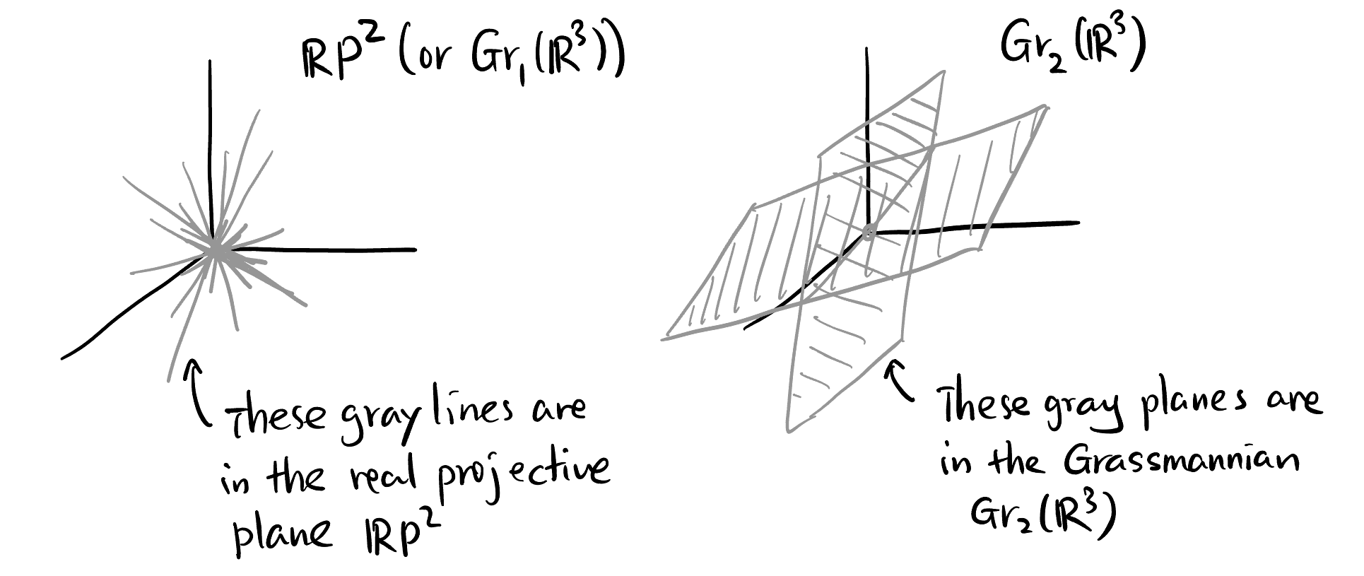 All \(1\)-dimensional subspaces form the projective space. What about \(n\)-dimensional subspaces? They form the so-called Grassmannian manifold!