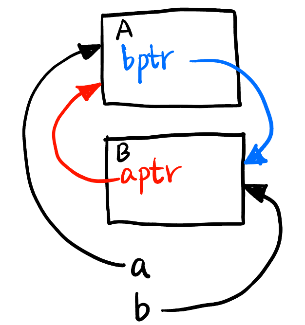 std::weak_ptr<B> bptr;