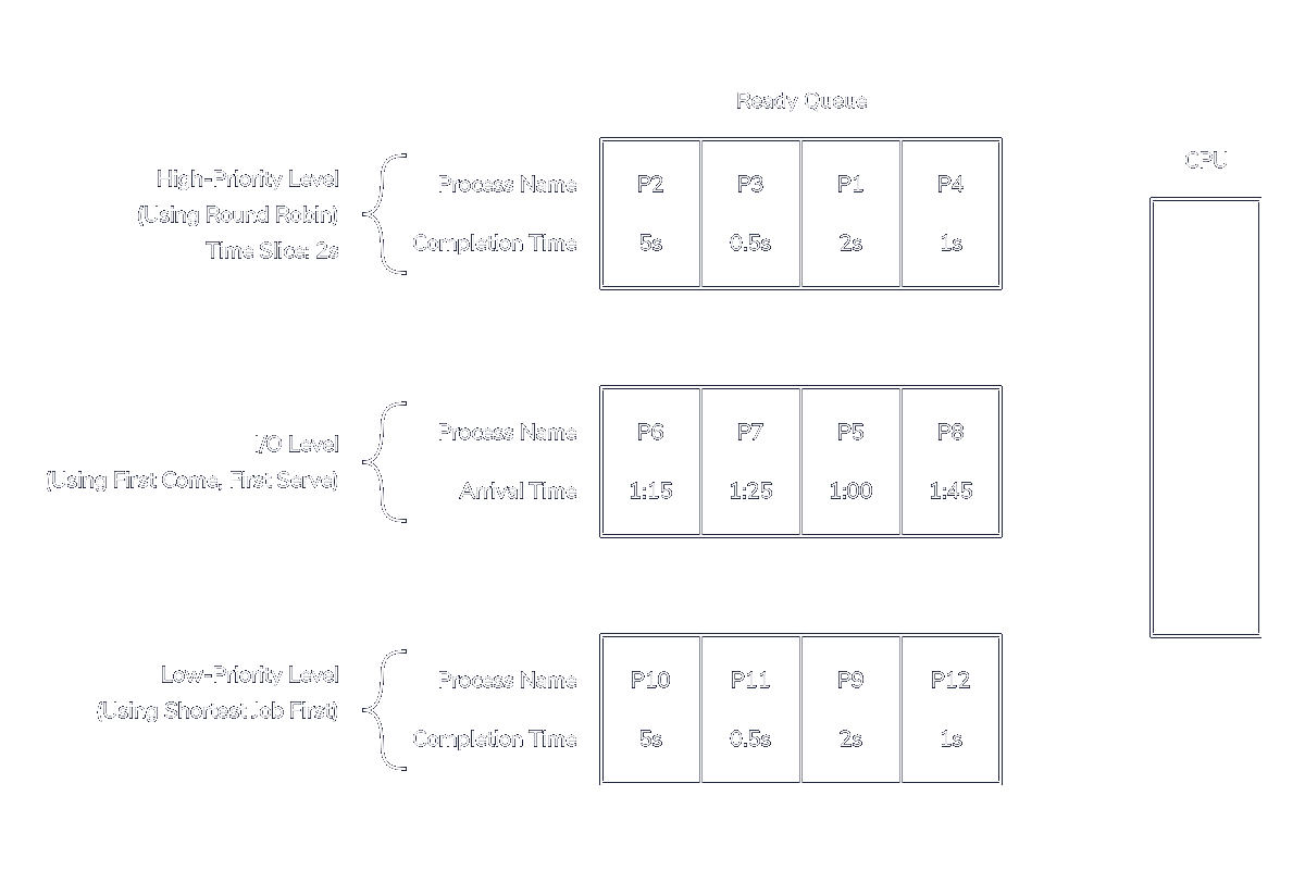 Figure 3: Multiple level queues 的 Process Scheduling 进程调度