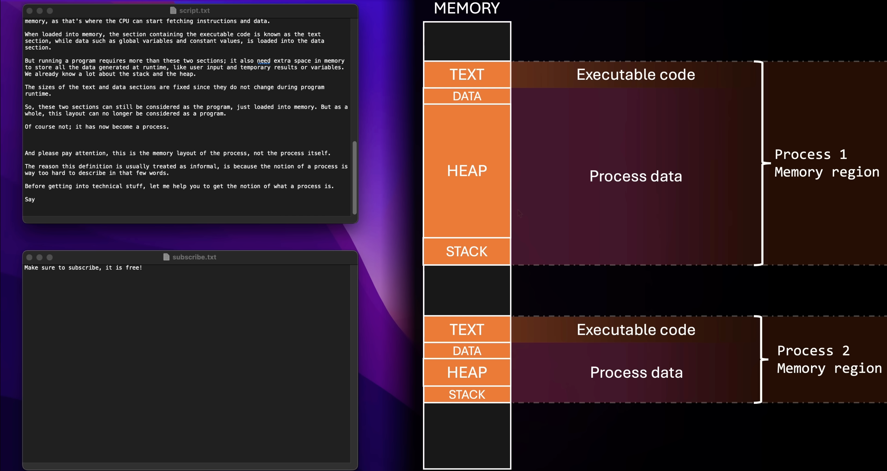 Figure 1: 相同 program (text editor) 被打开两次形成两个独立的 process [1]. - Program: 理解为一段汇编程序加上一些用到的内存中的数据.