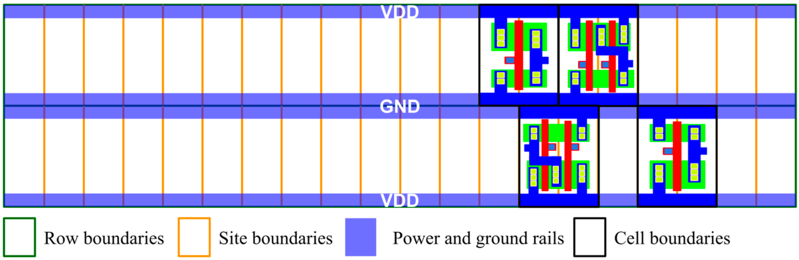 Figure 6: Std cell 必须上下对齐 row, 左右对齐 site [5]; 且下面一层的 std cell 需要 flip! - Detailed placement