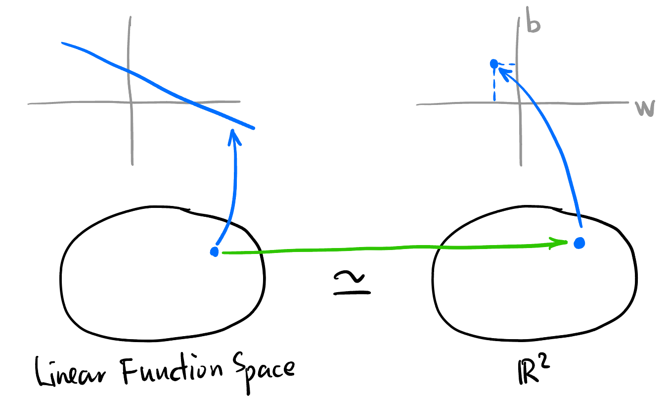 Linear Regression 的参数化函数空间同构5于 \(\mathbb{R}^2\):