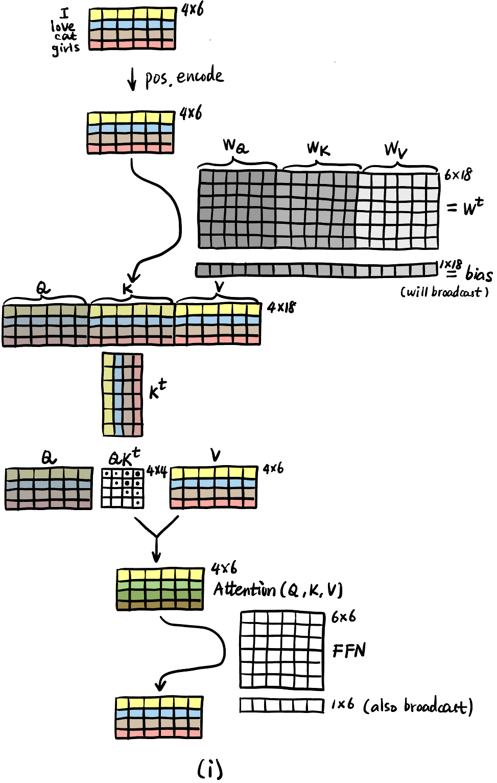- 首先 decoder-only 架构的第 \(i\) 个 token 是前面所有 token embedding 信息的聚合. LLM 最初的设想就是通过前面所有文字预测下一个 token 是什么, 也就是说后一个 token 能且只能被前面所有 token 决定, 那么后一个 token 与前面所有 token 的信息聚合就是等价的! (你细品). 就像范畴论中的 universal property, 如果一个箭头跟所有其它的箭头都满足某种特定的关系, 那这个箭头就能被所有其它箭头定义, 或者说这个箭头本身就是其它所有箭头! 再比如很多力的合力, 是一个力对吧, 那知道这个力相当于知道了其它所有的力, 反之亦然.
