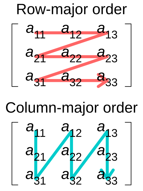- Row-major (RC): 先沿着行方向将数据拉直,