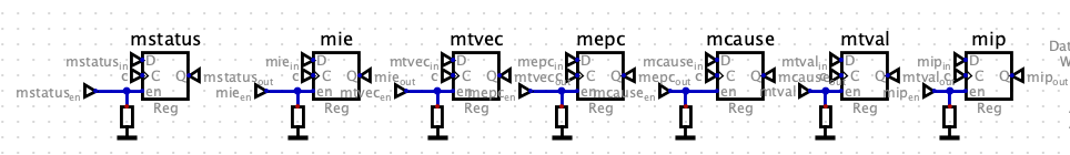 mstatus.MPP[12:11]: Machine Previous Priviledge mode. When an mret is executed, the privilege mode is change to this value.mstatus.MIE[3]: Machine (global) Interrupt Enable.mstatus.MPIE[7]: Machine previous Interrupt Enable. When an interrupt occurs, the content inmstatus.MIEis loaded into this bit (and for simplicity,mstatus.MIEis changed to 0, so no other interrupts is allowed to come in), and after the interrupt is processed (aftermret), this bit is restored intomstatus.MIEagain.