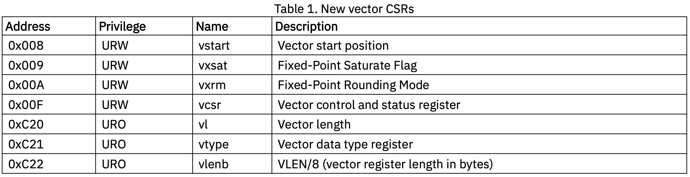 RVV 添加了 \(7\) 个新的 CSR 寄存器: