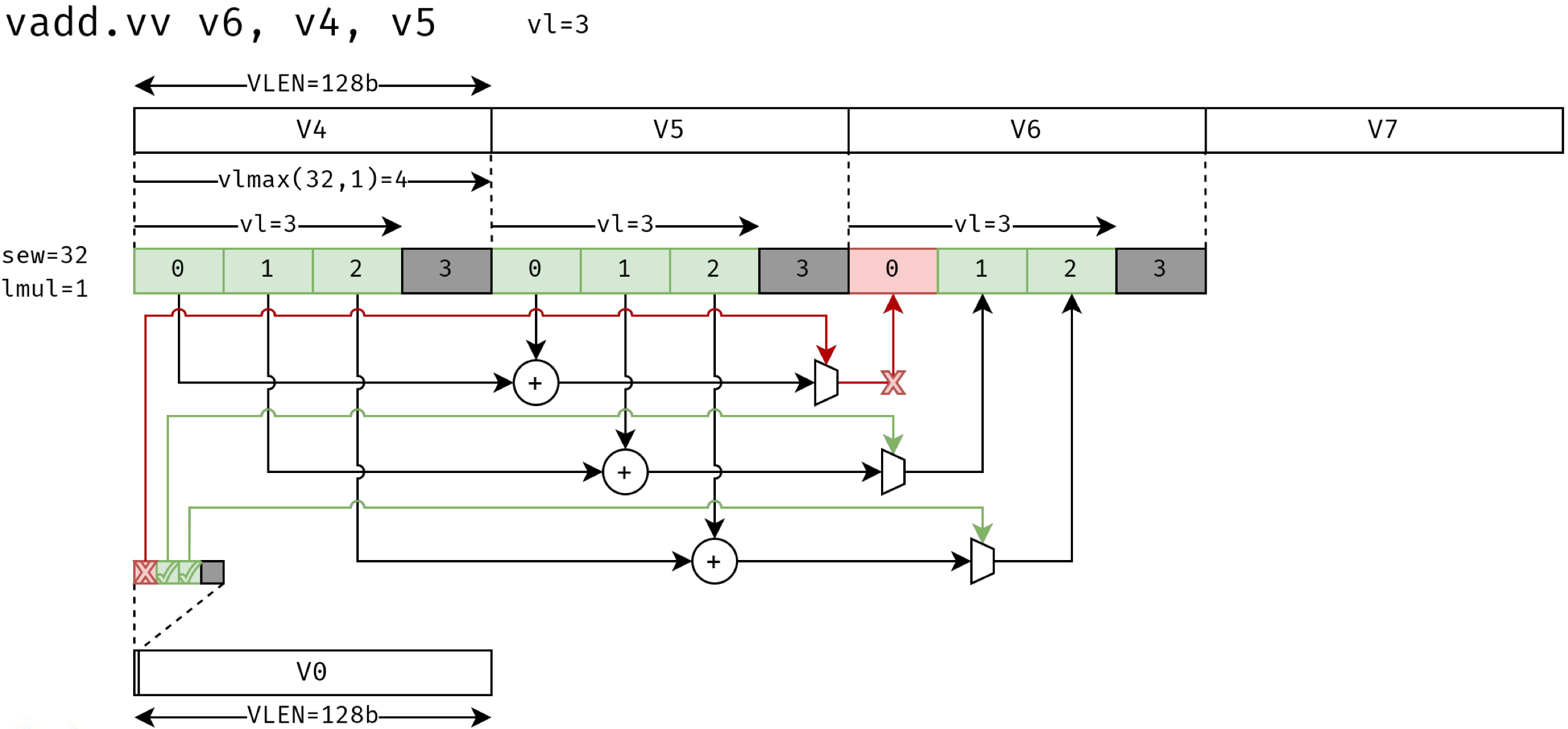 Figure 2: 带 Mask 的向量加指令 [1]. - Mask Undisturbed (