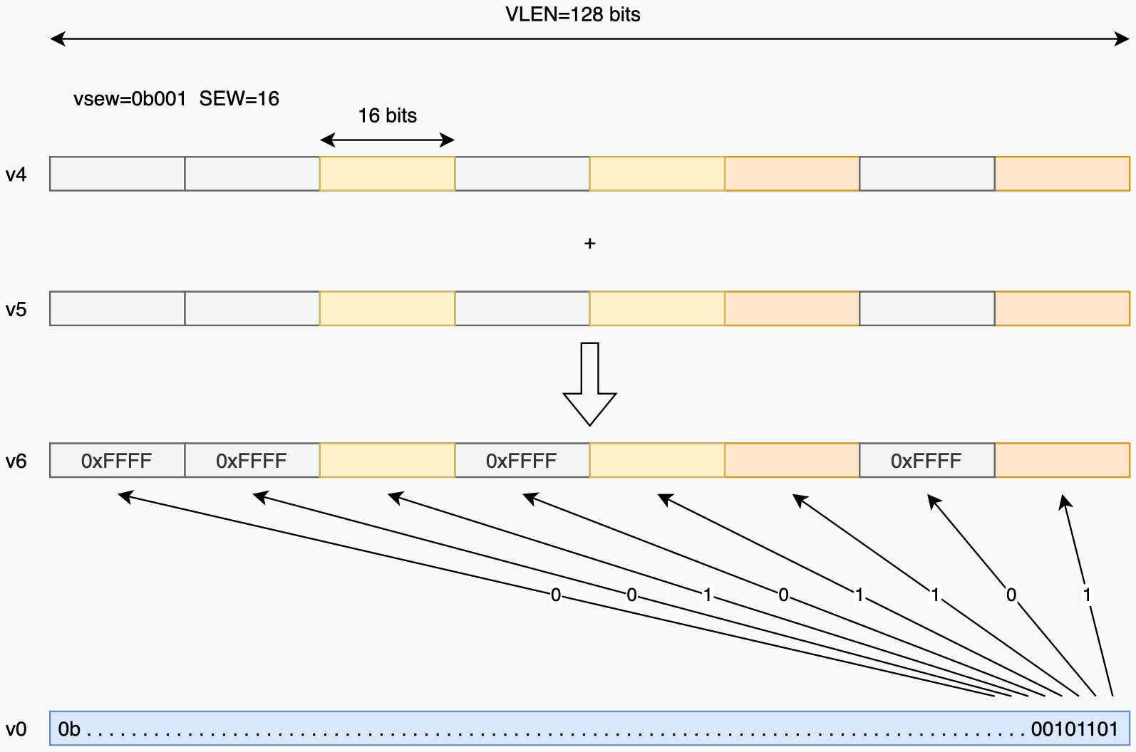 Figure 6: 在 ma条件下vadd.vv v6, v4, v5, v0.t的执行 [2].