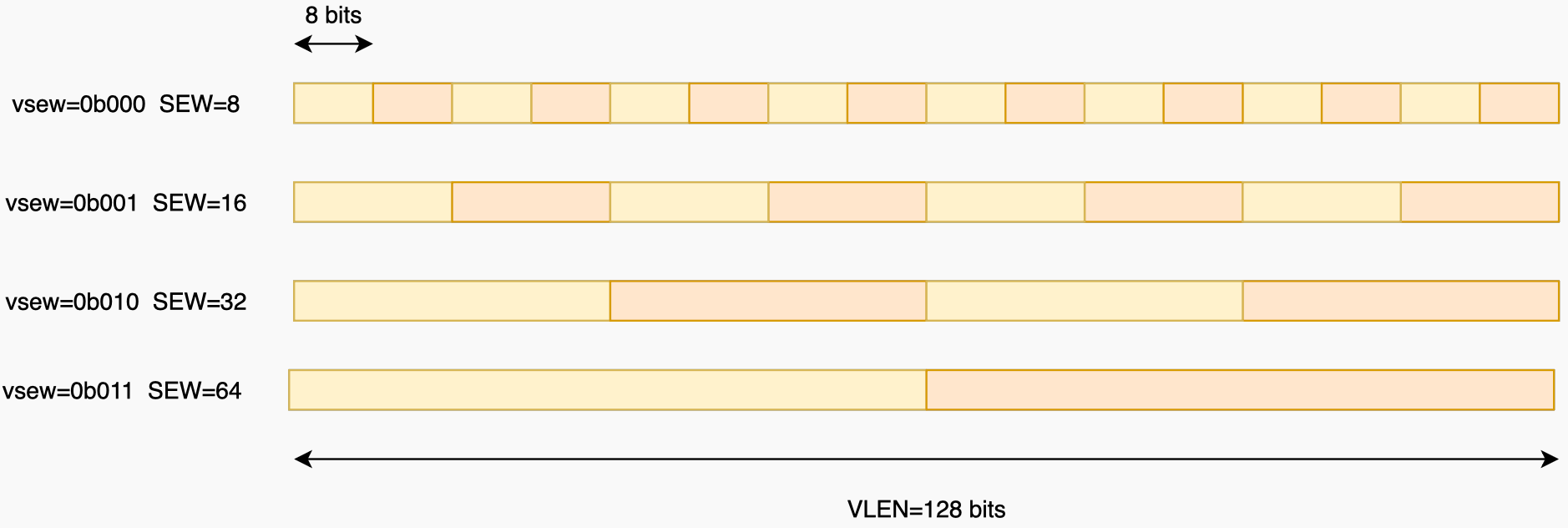 vtype寄存器的vsew字段改变sew(见 Figure fig-vsew-sew).